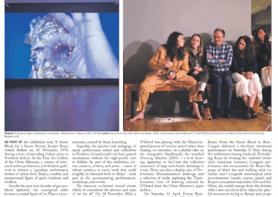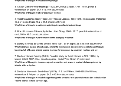 Anna Liesching invited me to select drawings from the Ulster Museum’s works on paper collection that connected my own practice to the themes of Beuys’ work and the history of performance practice in Belfast. These were shown with my own drawings from previous experimental drawing workshops, in which participants were encouraged to make their mark, creating a collective map of ideas and experiences.