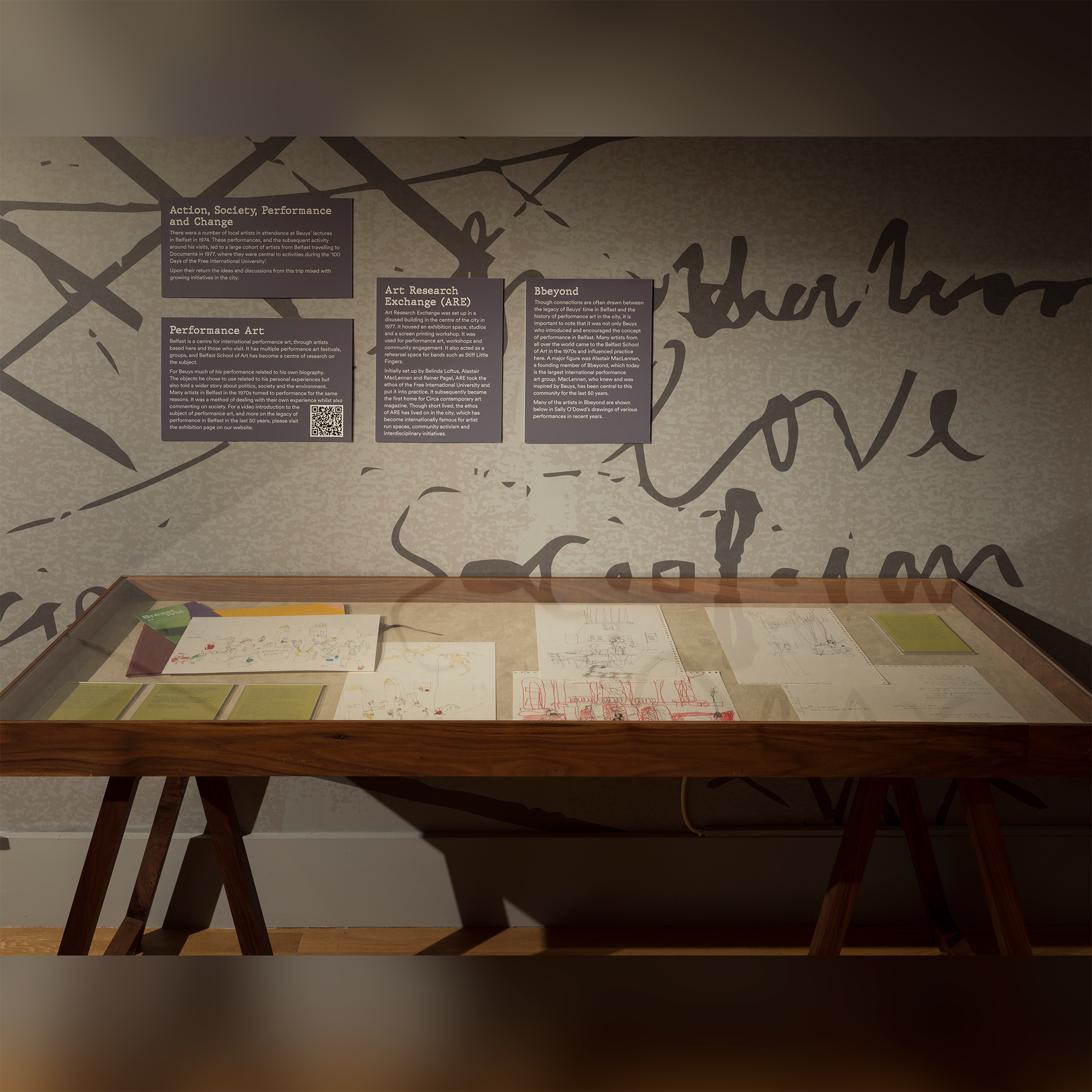 Anna Liesching invited me to select drawings from the Ulster Museum’s works on paper collection that connected my own practice to the themes of Beuys’ work and the history of performance practice in Belfast. These were shown with my own drawings from previous experimental drawing workshops, in which participants were encouraged to make their mark, creating a collective map of ideas and experiences.