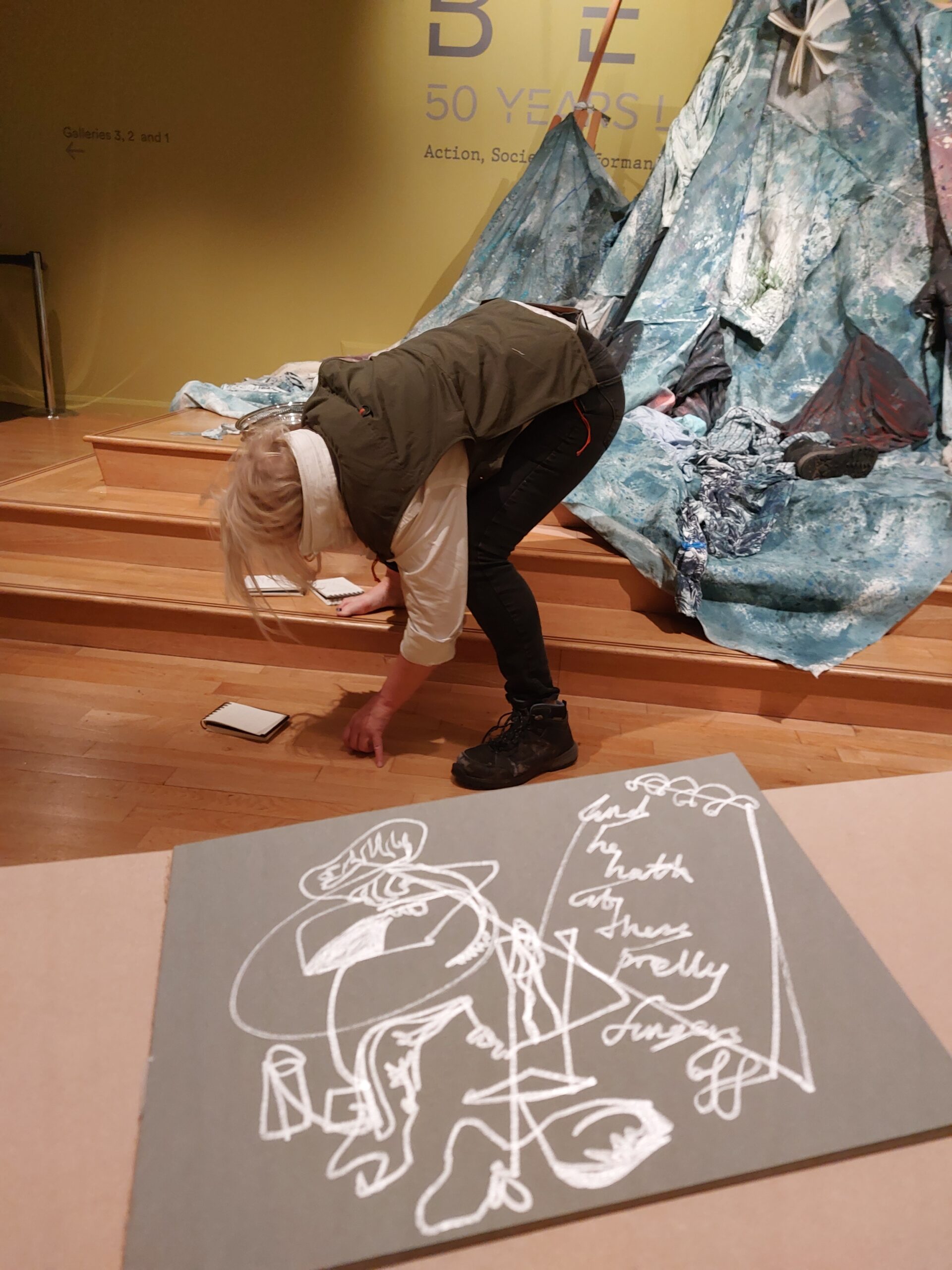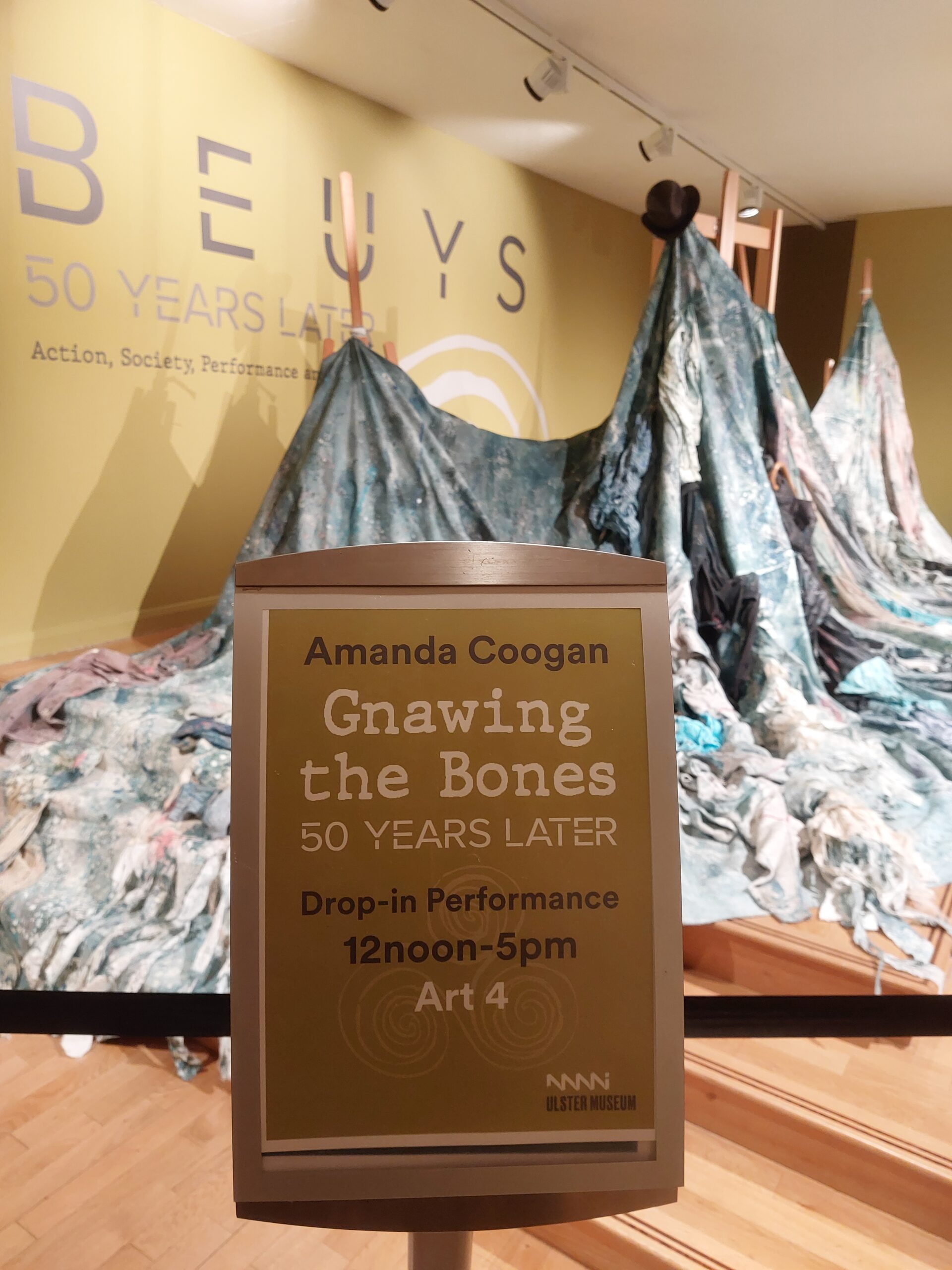 The performance was programmed for the exhibition Beuys 50 Years Later: Action, Society, Performance and Change, and curated by Anna Liesching at the Ulster Museum, Belfast.