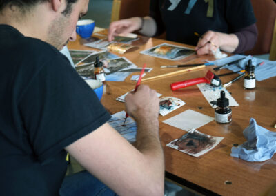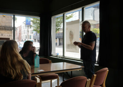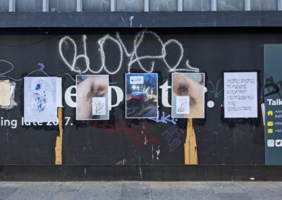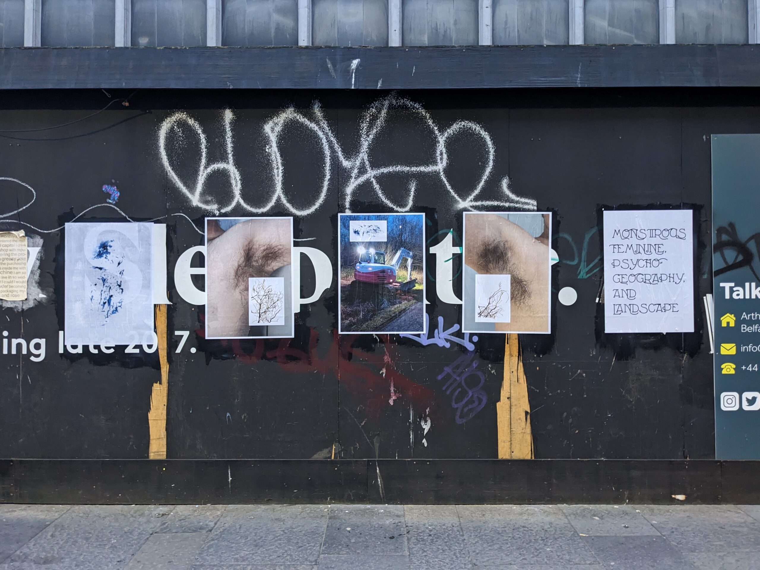 Both artists have worked with experimental drawing for many years, both in their own practice and as community outreach through experimental drawing workshops. The exhibition was an opportunity to bring together their distinct and overlapping practices in one exhibition that took place in the the Vault Gallery & Project Space, and in paste-up form about Belfast’s city centre.