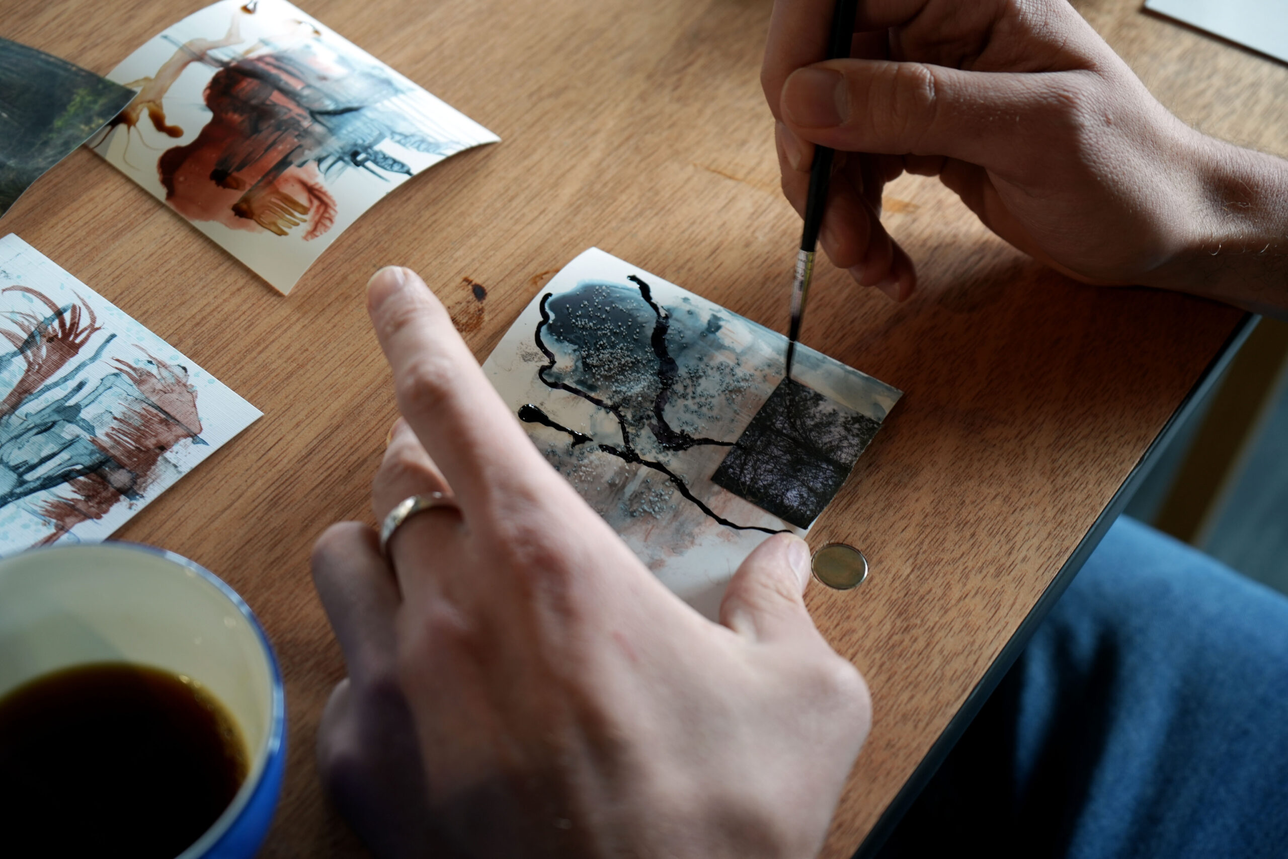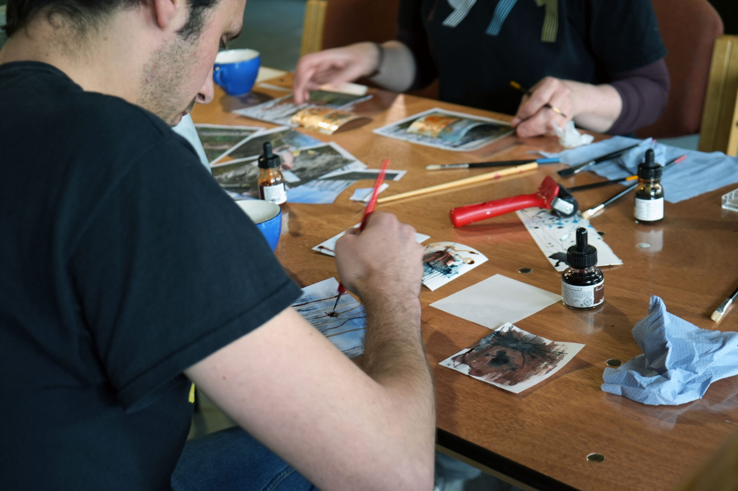 Studio neighbours at Vault Artist Studios, Sally and Jonny were keen to explore the use of ink in their recent work, and keen to develop, collaborate and showcase their work together.